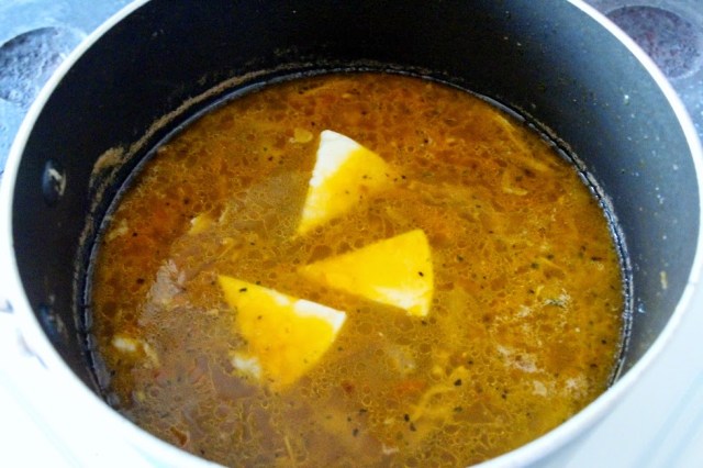 When the soup is ready, add the cheese spread triangles and boil on medium heat for a couple of minutes until melted.